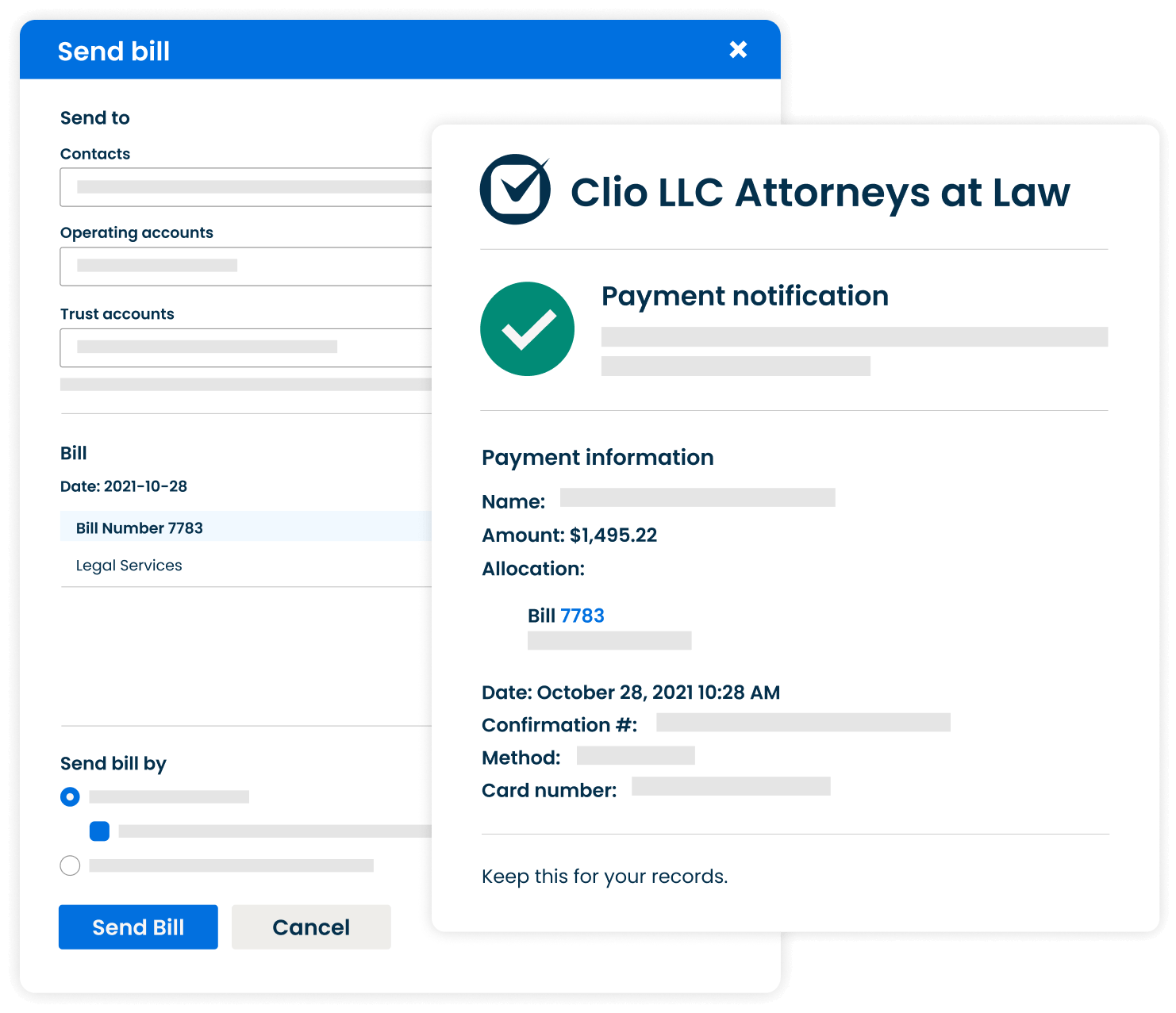 Clients can pay bills or trust requests online through your website, client portal, text message, email, and more. It’s easy to pay using credit, debit, or eCheck (US customers only), or through automated payment plans. -