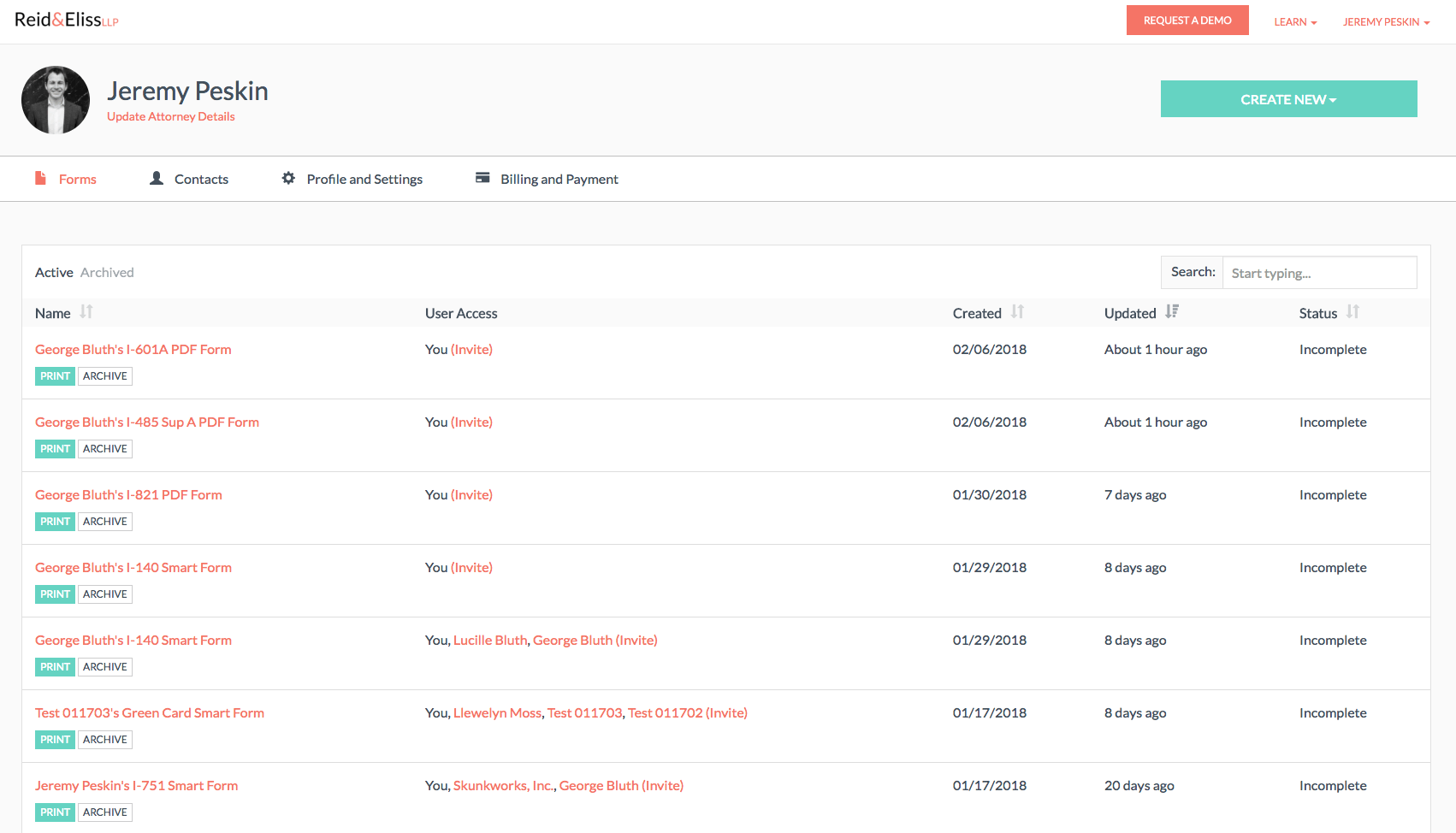 Combine any number of immigration forms into a single intake questionnaire for your client to complete. Review and download completed collections or one-by-one. -