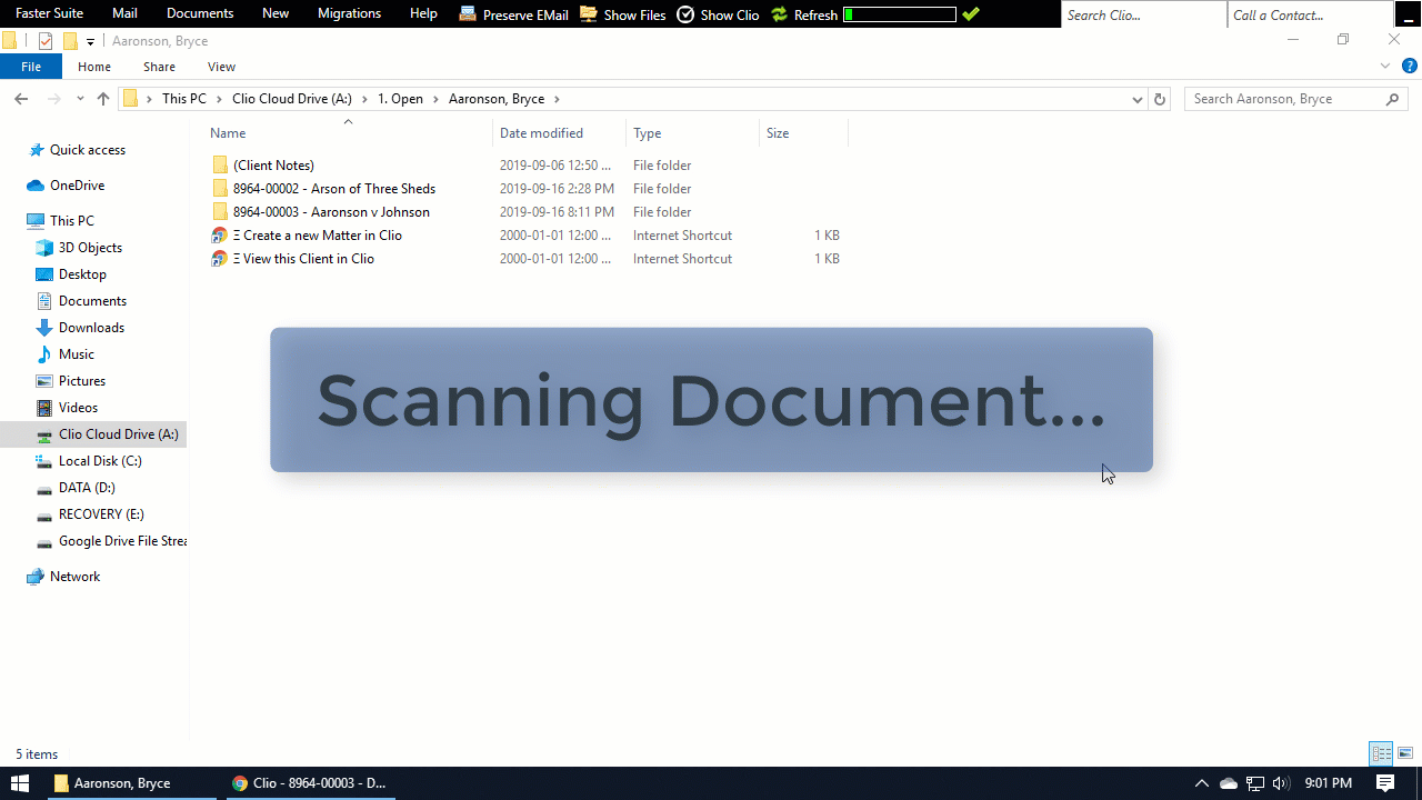 Faster Scan is designed to streamline your scanning process. Faster Scan will automatically detect a new scanned document and allow you to automatically import it to a matter in Clio.