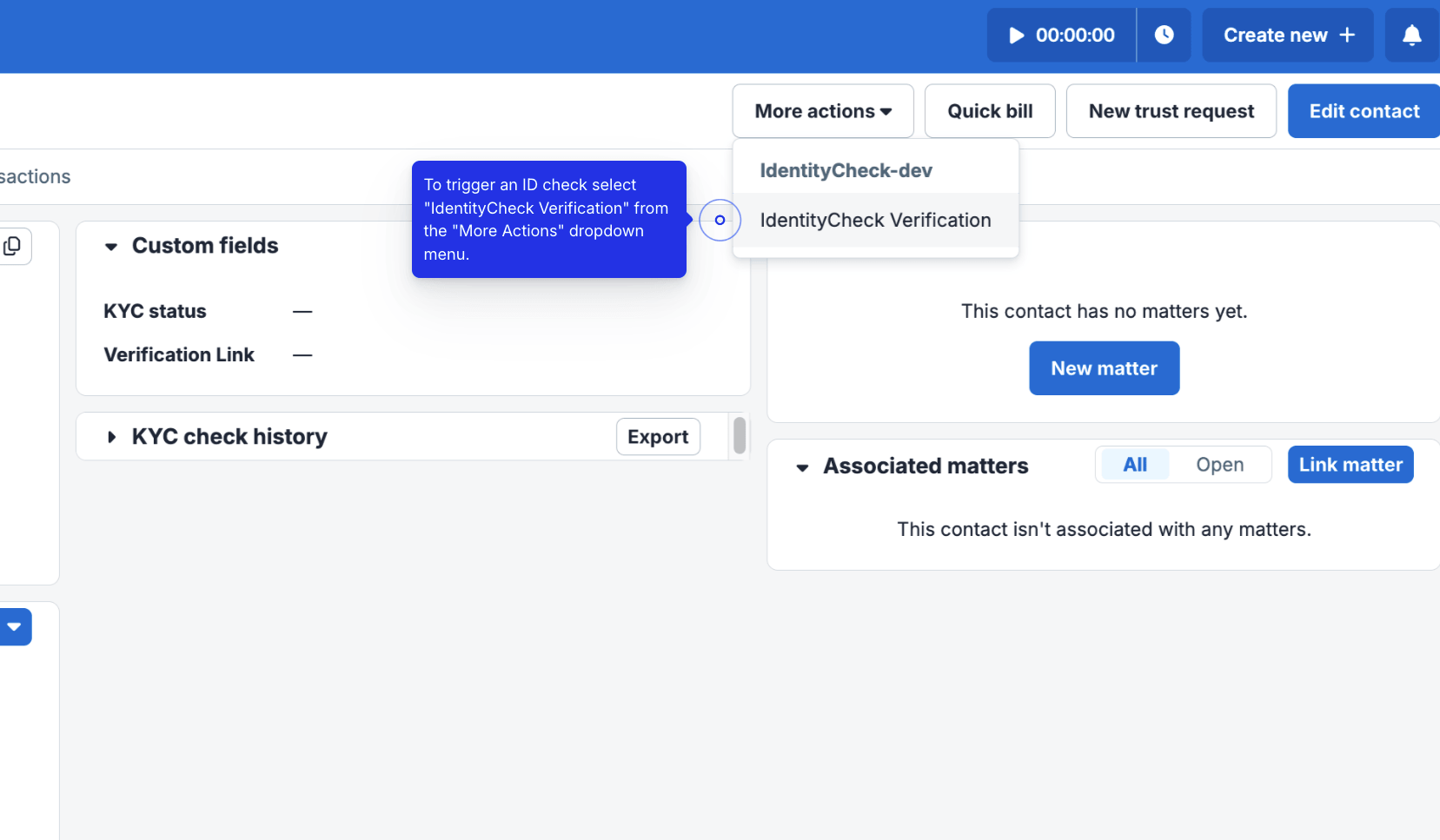 IdentityCheck works directly inside Clio, so you can run identity verification, AML screening, and client onboarding without switching systems. Trigger checks from existing contacts or matters, or collect client information upfront using secure onboarding forms — all in one seamless workflow.