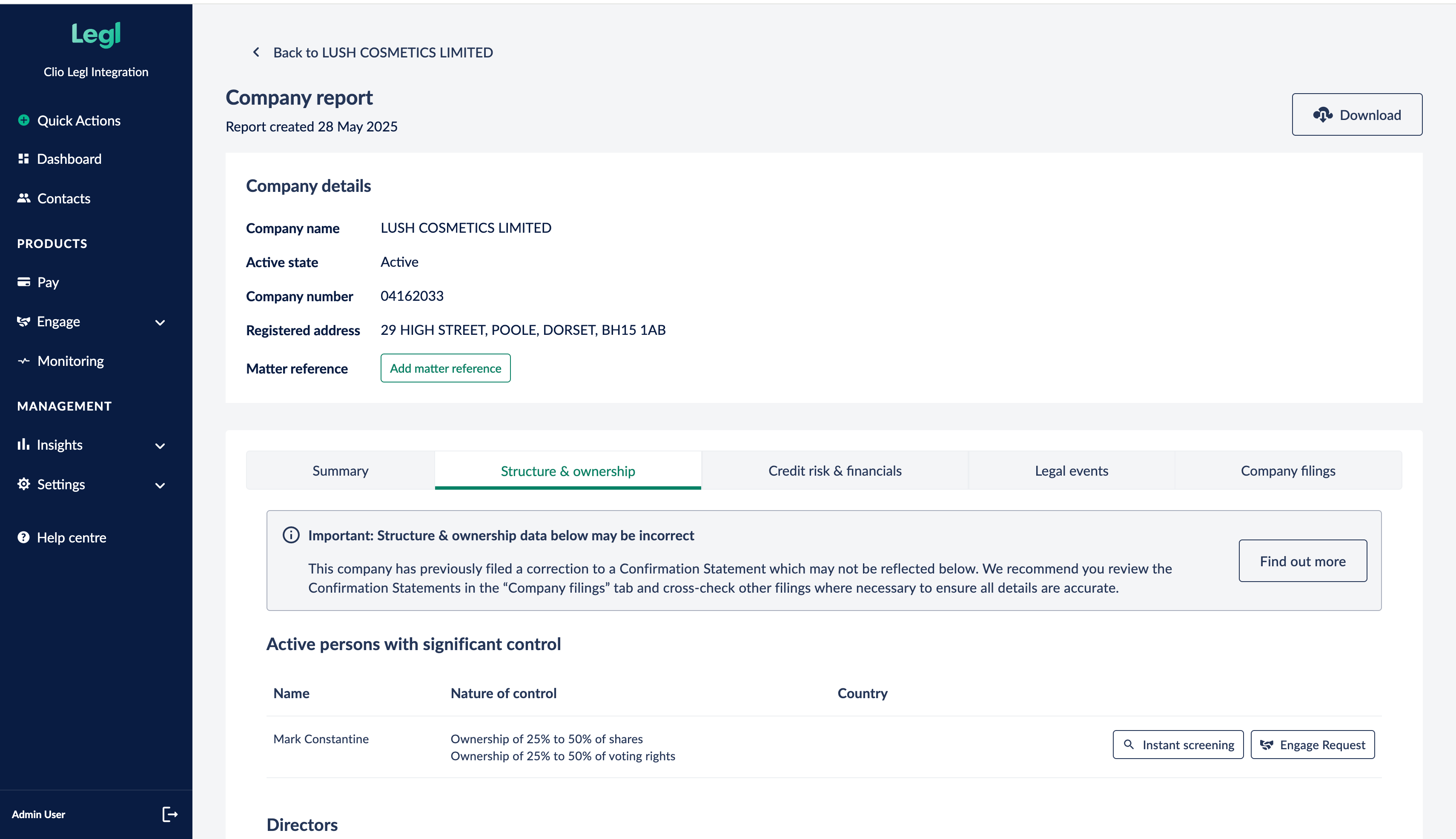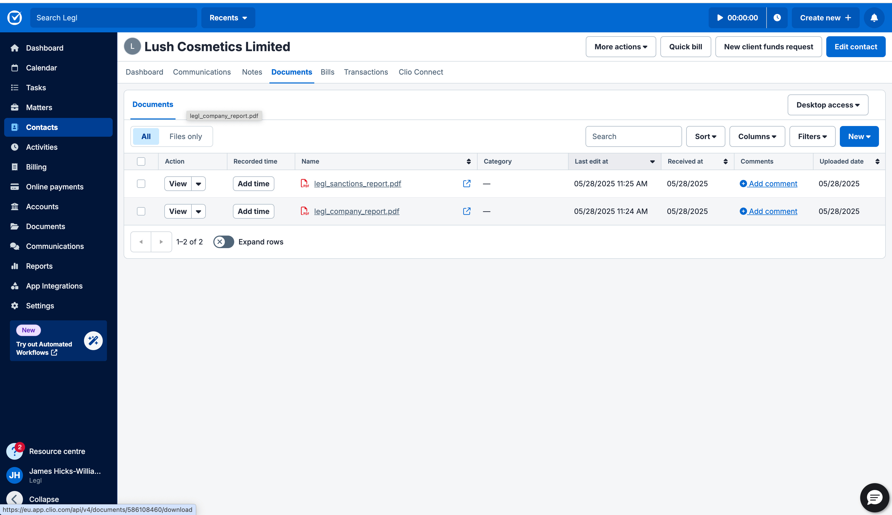 Automatically store CDD reports and AML documents in ClioThis removes duplication, reduces risk, and improves the experience for both law firms and clients.