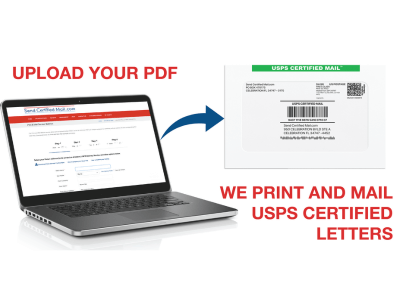 USPS same-business-day print and mail service for First Class, Certified Mail, Return Receipt Signatures, and Notarized Proof of Mailings. Mail crucial legal compliance documents—no monthly fees or long-term contracts. Our pay-as-you-mail service saves time, money, and trips to the Post Office. -