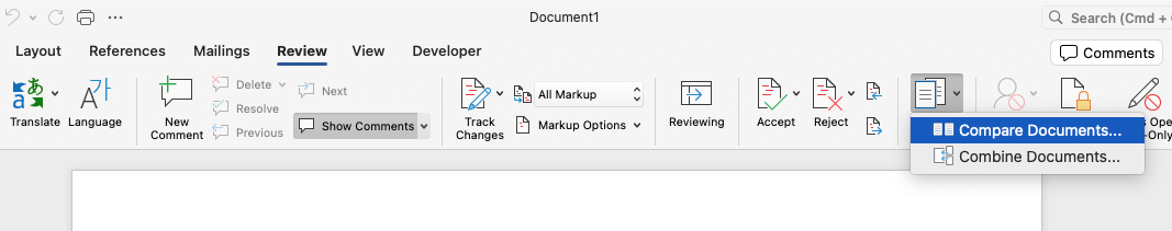 Step 1: Open the compare tool in Microsoft Word