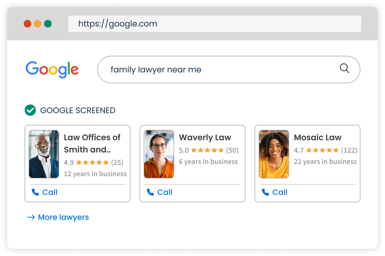 If your firm is targeting a specific region, Google Local Services Ads (LSAs) help position your firm at the very top of search results, complete with reviews, direct call features, and “Google Screened” verification. Our guide to Google LSAs shows how firms use LSAs to generate higher-quality leads from their immediate market.