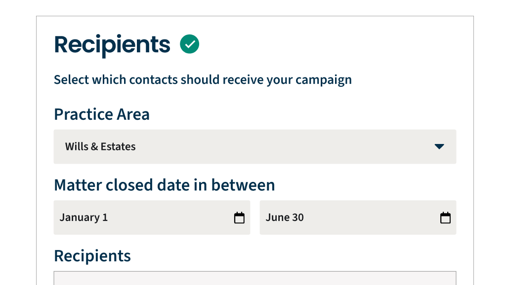 Unlike generic email tools, Clio Grow’s email marketing software is built specifically for law firms. It integrates with your legal CRM, uses matter and contact data to segment audiences, and includes templates tailored to legal use cases—so even firms without marketing expertise can send effective campaigns in minutes.