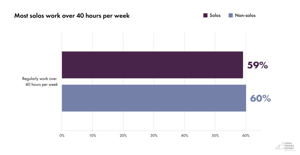 - Many solos have struggled to find the time to put towards the clients they have, which could be a reflection of having to balance their days with a significant amount of non-billable administrative work.